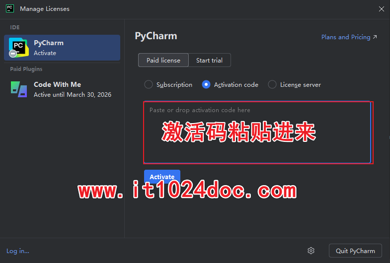 - 打开PyCharm,粘贴刚刚复制的激活码: