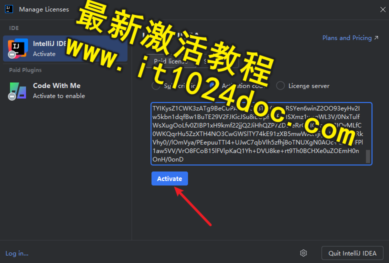 启动IDEA,将复制的激活码粘贴到注册窗口: